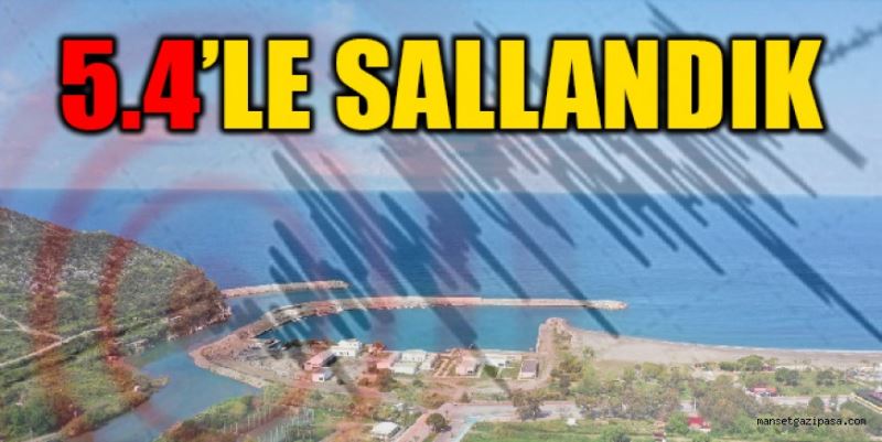 Gazipaşa’da, kıyıdan 38 kilometre uzaklıkta, denizin 89.1 kilometre derinliğinde 5.4 büyüklüğünde deprem meydana geldi. Saat 15.44’te meydana gelen şiddetli sarsıntı, Gazipaşa başta olmak üzere çevre il ve ilçelerde de hissedildi. AFAD, meydana gelen depremin büyüklüğünü 5.2 olarak duyururken, Kandilli Rasathanesi ise sarsıntının büyüklüğünü 5.4 olarak duyurdu. Kısa süre etkili olan deprem, büyük panik yarattı.