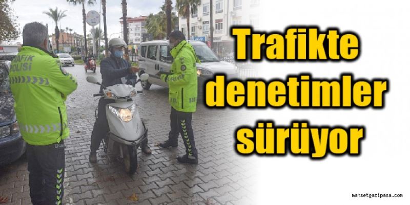GAZİPAŞA İlçe Emniyet Müdürlüğü Trafik Tescil ve Denetleme Büro Amirliği, trafik yoğunluğunun fazla olduğu noktalarda denetimlerini aralıksız sürdürüyor. Trafik ekipleri, Mehmet Oğuz Bulvarı üzerinde dün motosikletlere yönelik denetim yaptı. Motosiklet sürücülerini durduran polis ekipleri, ehliyet kontrolü yaparak, kask konusunda uyarılarda bulundu. Koronavirüs salgını döneminde, özverili çalışmalarıyla takdir toplayan polis ekipleri, aynı zamanda trafiğin güvenli ve sağlıklı akışı için rutin denetimlerini sürdürüyor. Özellikle Mehmet Oğuz Bulvarı’nda oluşan yoğun trafik, zaman zaman yayalar ve araçlar için sorunlu bir hal alıyorken trafik ekipleri, bu bölgede yaptıkları rutin kontrol ve denetimlerle, sıkışan trafiğin kontrollü ilerlemesini sağlıyor. Ekipler, hatalı veya çift sıra park yapan araçları uyararak, fotoğraflıyor. Kurallara uymayan sürücülere idari para cezası uygulanıyor. Ayrıca polis ekipleri, motosiklet kontrollerini de aksatmıyor. Sürücülere kaskın önemi hakkında bilgilendirme yapan polis ekipleri, kask kullanmayan ya da eksik belgesi olan sürücülere işlem uyguluyor.