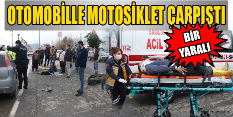 GAZİPAŞA’DA otomobille motosikletin çarpıştığı kazada 1 kişi yaralandı. Kaza saat 18.00 sıralarında Gazi Mahallesi Milli Egemenlik Bulvarı’nda meydana geldi. Edinilen bilgiye göre 07 KB 930 plakalı otomobiliyle Kahyalar Mahallesi’nden Gazipaşa istikametine seyreden Sedef Ç., Çamlı Mezarlık önündeki kavşaktan U dönüşü yaptı. Otomobiliyle D400 Karayolu üzerinde bulunan yan yola girmek isteyen Sedef Ç.’nin kullandığı otomobille, Gazipaşa-Kahyalar istikametinde seyreden Ali D. idaresindeki 07 UR 590 plakalı motosikletle çarpıştı. Kazada asfalt zemin üzerine savrulan Ali D. yaralandı. Kazayı gören vatandaşlar durumu 112 Acil Çağrı Merkezi’ne bildirdi. Alınan ihbarın üzerine olay yerine polis ve sağlık ekipleri sevk edildi. İlk müdahalesi olay yerinde yapılan yaralı Ali D., ambulansla Gazipaşa Devlet Hastanesi’ne kaldırılarak tedavi altına alındı. Yaralının hayati tehlikesinin bulunmadığı kaydedildi.