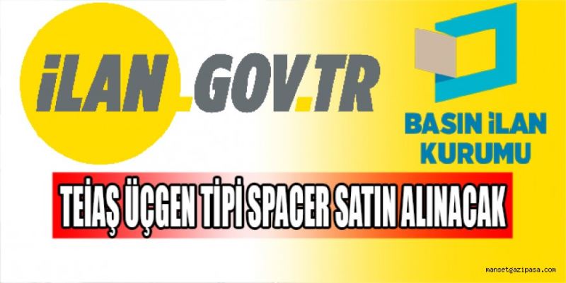 Basın İlan Kurumu’nun ilan portalı ilan.gov.tr’de yer alan ilana göre, Türkiye Elektrik İletim A.Ş Genel Müdürlüğü (TEİAŞ) 19. Bölge Müdürlüğü, Üçgen tipi spacer (Ara tutucu) satın alınacak. Açık İhale Usulü şeklinde yapılacak mal alım ihalesi, 31.03.2021 günü saat 11.00’de TEİAŞ 19. Bölge Müdürlüğü Toplantı Salonu’nda gerçekleştirilecek.