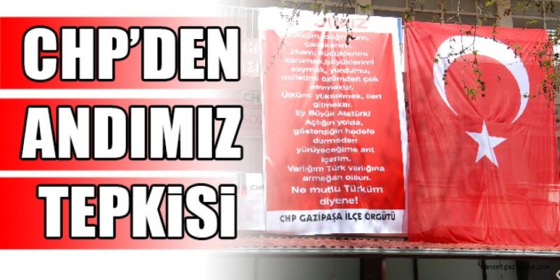 Cumhuriyet Halk Partisi (CHP) Gazipaşa İlçe Başkanlığı, Öğrenci Andı’nın okullarda okutulmaması kararına tepki göstererek, parti binasına Andımız metnini astı. Danıştay İdari Dava Daireleri Kurulu'nun okullarda Andımızın okunmasını yasaklayan yönetmeliği iptal eden mahkeme kararını kaldırmasına tepkiler gelmeye devam ediyor. CHP Gazipaşa İlçe Başkanlığı karara tepki göstererek, parti binasının dış kısmına dev Türk Bayrağı yanında Andımız metni astı. İlçe Başkanı Ömer Güven, konuyla ilgili olarak “Öğrencilerin yıllar boyunca, hep bir ağızdan gururla okuduğu andımız, 8 Ekim 2013 tarihinde İlköğretim Kurumları Yönetmeliğinde yapılan değişiklik ile kaldırılmıştır. Açılan davaların ardından, 2018 yılında Danıştay 8.Dairesi yönetmeliğin ilgili maddesinin iptaline karar vermiştir. Bu gelişmenin üzerine Milli Eğitim Bakanlığı karara itiraz etmiş, Danıştay İdari Dava Daireleri Kurulu Milli Eğitim Bakanlığı’nın itirazını kabul etmiştir. Bu karar doğrultusunda, 12 Mart 2021 tarihi itibariyle andımız okullardan resmen kaldırılmıştır. Andımız ülke bütünlüğü içinde, vatan sevgisini, Cumhuriyet ideallerini barındırır. Saygı ve sevgi kavramlarını içselleştirir. Çağdaş medeniyetler seviyesinin üzerine çıkma hedefini simgeler. Atatürk gençliği olarak bizler, Türk’üm doğruyum ile başlayan andımızı okumaktan her zaman gurur duyduk, andımızla güne başlamak küçük yaşlarda milli duygularımızı yoğun şekilde yaşamamıza sebep oldu. Danıştay İdari Dava Daireleri Kurulu'nun verdiği karar karşılığında parti binamıza Öğrenci Andımızı astık. Bir gün Andımızın okullarımıza geri döneceğine inancımız tam” dedi.