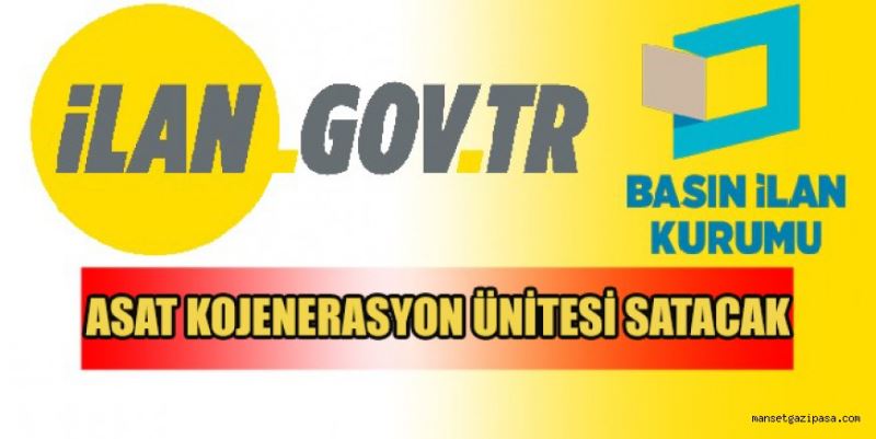 Basın İlan Kurumu’nun ilan portalı ilan.gov.tr’de yer alan ilana göre, Antalya Su ve Atıksu İdaresi Genel Müdürlüğü; Kojenerasyon Ünitesi satacak. ASAT Genel Müdürlüğü İhale Yönetmeliği 29/b maddesine göre Açık Teklif Usulü ile açık artırma şeklinde satışı yapılacak olan ihale, 22.06.2021 günü saat 14.30’da ASAT Genel Müdürlüğü – Evrak Kayıt Servisi’nde yapılacak.