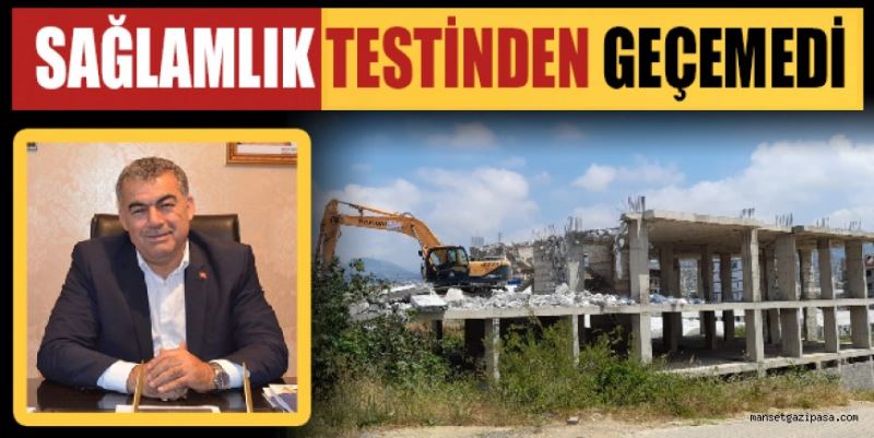 Gazipaşa’da, FETÖ’ye ait olduğu tespit edilen ve devlet tarafından 2016 yılında el konulan öğrenci yurdu inşaatı, sağlamlık testinden geçemedi ve yıkıma alındı.