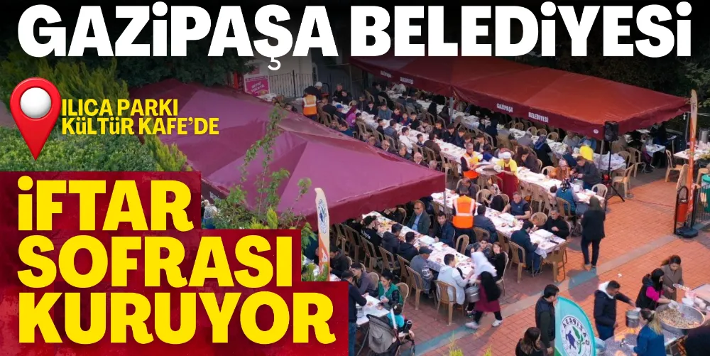 Sosyal Belediyecilik anlayışıyla çalışmalarına devam eden Gazipaşa Belediyesi, Ramazan ayı boyunca vatandaşları iftar sofrasında buluşturacak. Belediye İftar Çadırı, Pazarcı Mahallesi’nde bulunan Ilıca Parkı Kültür Kafe’de kurulacak. Ramazan ayının manevi atmosferini paylaşmak ve dayanışmayı artırmak amacıyla kurulan iftar çadırında, her akşam yaklaşık 500 kişiye sıcak yemek ikram edilecek.