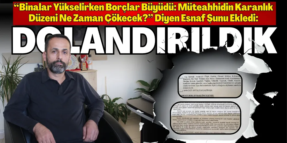 Gazipaşa’da son yıllarda yükselen betonarme binaların gölgesinde, alacak-verecek ilişkilerinin karmaşıklaştığı, milyonluk mağduriyetlerin yaşandığı iddialar gündeme oturdu. İlçede müteahhitlik yapan M.B. ile Gazipaşa esnaflarından Durali Mıdış başta olmak üzere çok sayıda vatandaş arasında başlayan ticari anlaşmazlıklar, “Tefecilik”, “Dolandırıcılık”, “Tehdit”, “güveni kötüye kullanma” ve “Örgüt kurma” suçlamalarına kadar uzandı.