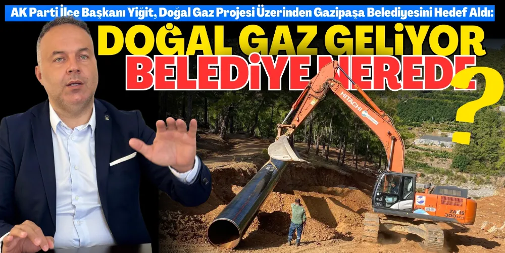 AK Parti Gazipaşa İlçe Başkanı Ramis Yiğit, doğal gaz boru hattı çalışmalarının 4 ay içinde tamamlanacağını belirterek yerel belediyenin dağıtım süreci için gerekli adımları atmadığını söyledi. Yiğit, altyapı ve imar üzerinden Gazipaşa Belediyesi ile Antalya Büyükşehir Belediyesini eleştirdi.