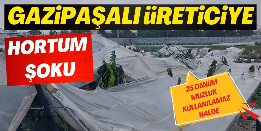 Denizyaka Mahallesi’nde bulunan ve modern üretim yapılan muz serasının, hortumun şiddetiyle birlikte konstrüksiyonu çöktü, örtü sistemi parçalandı ve seranın tamamı yerle bir oldu. Yaşanan afette serada bulunan ürünlerin tamamının zarar gördüğü öğrenildi. Gazipaşalı üretici Murat Çelik’in serasında oluşan hasarın çok büyük boyutlara ulaştığı belirtildi.