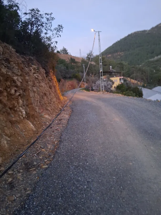 Gazipaşa’nın Küçüklü Mahallesi Gökçeler mevkiinde yaklaşık bir ay önce ağaç devrilmesi sonucu bir elektrik direği kullanılamaz hale geldi. Direğin dibinden eğildiği ve elektrik telinin boşta kaldığı görüldü. Mahalle sakinlerinin aktardığı bilgiye göre, direğin eğilmesinden birkaç gün sonra yolu kullanan bir kamyon, kontrolsüz şekilde asılı duran tele takıldı. Bunun üzerine tel yola savruldu. Olayın ardından hattın yerde ve açık şekilde kaldığı ifade edildi.