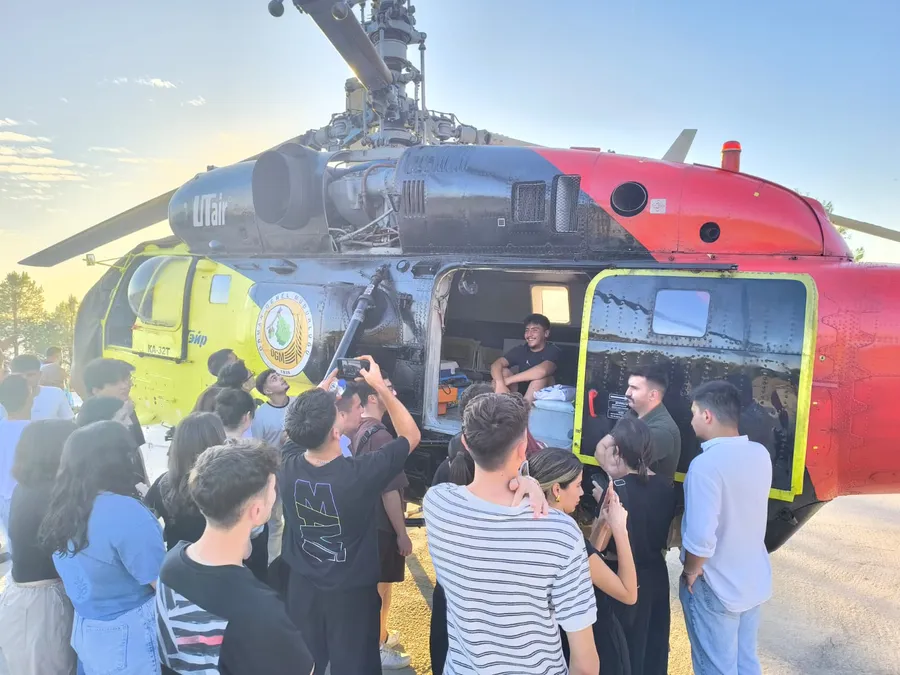Öğrencilere ayrıca orman yangınlarıyla mücadelede görev alan pilotların sorumlulukları, yangın sahasına iniş-kalkış zorlukları, meteorolojik koşulların önemi ve kara ekipleriyle sağlanan haberleşmenin hayati rolü de anlatıldı. Özellikle yaz aylarında bölgedeki yoğun yangın riskine dikkat çekilerek, hava ve kara unsurlarının birlikte yürüttüğü operasyonların önemi vurgulandı.