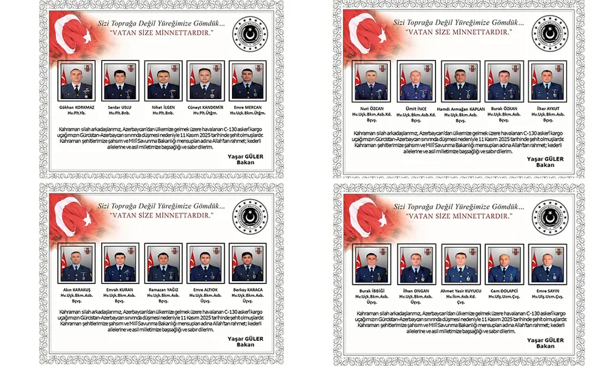 Azerbaycan’dan Türkiye’ye dönmek üzere havalanan C-130 askeri kargo uçağının Gürcistan-Azerbaycan sınırında düşmesi üzerine 20 asker şehit oldu. Şehadete eren askerlerin isimleri ise şu şekilde: "Hava Pilot Yarbay Gökhan Korkmaz, Hava Pilot Binbaşı Serdar Uslu, Hava Pilot Binbaşı Nihat İlgen, Hava Pilot Üsteğmen Cüneyt Kandemir, Hava Uçak Bakım Üsteğmen Emre Mercan, Hava Uçak Bakım Astsubay Kıdemli Başçavuş Nuri Özcan, Hava Uçak Bakım Astsubay Kıdemli Başçavuş Ümit İnce, Hava Uçak Bakım Astsubay Başçavuş Hamdi Armağan Kaplan, Hava Uçak Bakım Astsubay Başçavuş Burak Özkan, Hava Uçak Bakım Astsubay Başçavuş İlker Aykut, Hava Uçak Bakım Astsubay Başçavuş Akın Karakuş, Hava Uçak Bakım Astsubay Başçavuş Emrah Kuran, Hava Uçak Bakım Astsubay Başçavuş Ramazan Yağız, Hava Uçak Bakım Astsubay Üstçavuş Emre Altıok, Hava Uçak Bakım Astsubay Üstçavuş, Berkay Karaca, Hava Uçak Bakım Astsubay Üstçavuş Burak İbbiği, Hava Uçak Bakım Astsubay Üstçavuş İlhan Ongan, Hava İkmal Astsubay Kıdemli Çavuş Ahmet Yasir Kuyucu, Hava Ulaştırma Uzman Çavuş Cem Dolapci, Hava Ulaştırma Uzman Çavuş Emre Sayın." İHA