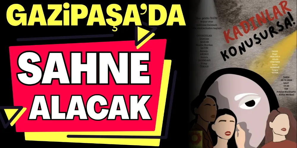 Uluslararası Akdeniz Tiyatro Ödülleri’nde 2025 yılında “Uluslararası Hizmet Ödülü”ne layık görülen yazar Doç. Dr. Birgül Yeşilova Güler’in yaşanmış kadın hayatlarından yola çıkarak kaleme aldığı “Kadınlar Konuşursa” adlı tiyatro oyunu, Gazipaşa’da seyirciyle buluşmaya hazırlanıyor. Oyun, Eğitim Sen Gazipaşa İlçe Temsilciliği Yürütme Kurulu üyesi Semra Alemdağ yönetiminde, 20 Aralık Cumartesi günü saat 19.30’da Antalya Büyükşehir Belediyesi Gazipaşa Kültür Merkezi’nde ilk gösterimini yapacak. Oyunu izlemeye gelen arasında oyunun yazarı Doç. Dr. Birgül Yeşilova Güler de olacak.