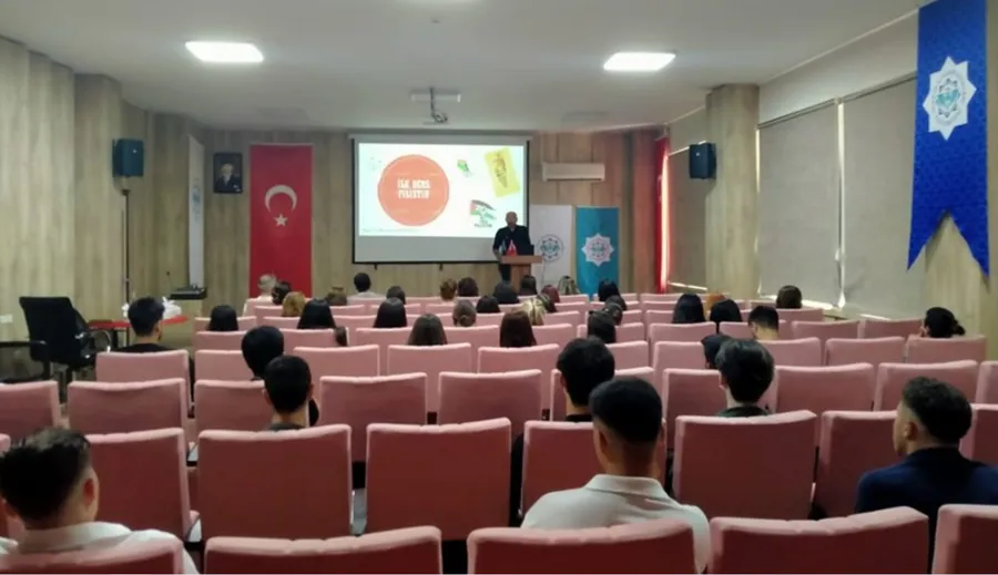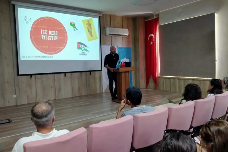 Bu yılın ilk dersinde Filistin meselesi konu edildi. Doç. Dr. Kahyaoğlu, Filistin’in tarihsel sürecini aktarırken, insan hakları, özgürlük, adalet ve barış kavramlarının evrensel önemini vurguladı. Konuşmada Filistin’in yalnızca politik bir sorun değil, insanlığın ortak değerlerini ilgilendiren insani bir mesele olduğuna dikkat çekildi.