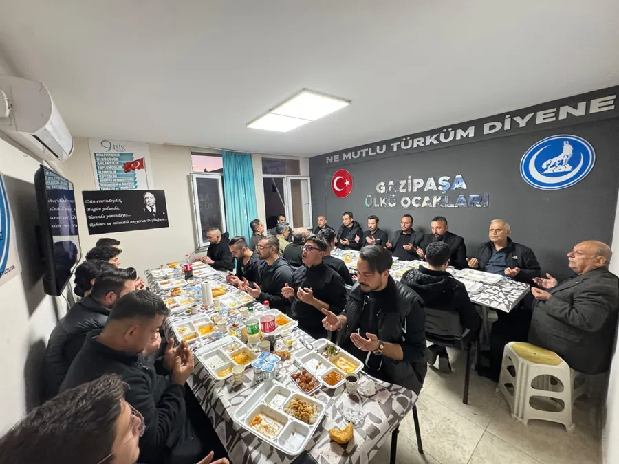 Ülkü Ocakları Gazipaşa İlçe Başkanlığı tarafından düzenlenen iftar programında ülkücüler aynı sofrada bir araya geldi. Ülkü Ocakları Gazipaşa İlçe Başkanlığı tarafından kurulan iftar sofrasında ülkücü camianın temsilcileri ve çok sayıda davetli bir araya geldi. Ülkü Ocakları Gazipaşa İlçe Başkanı Kadir Sezen’in ev sahipliğinde gerçekleşen programa MHP Gazipaşa İlçe Başkanı İbrahim Tan, Gazipaşa ve Alanya’da ülkücü camianın önde gelen isimlerinden Yavuz Uysal ve Emre Görgülü ile çok sayıda ülkücü katıldı. Programda akşam ezanının okunmasıyla birlikte dualar edilerek oruçlar açıldı. Katılımcılar aynı sofrada buluşarak Ramazan ayının manevi atmosferini paylaştı.