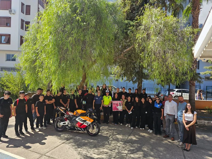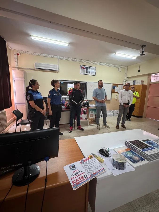 Programın ardından okul bahçesinde öğrencilere uygulamalı olarak kask ve koruyucu ekipmanlar tanıtıldı. Polis ekipleri, doğru kask seçimi, kaskın nasıl takılması gerektiği ve ekipmanların olası kazalarda neleri önleyebileceği konusunda detaylı bilgiler verdi.
