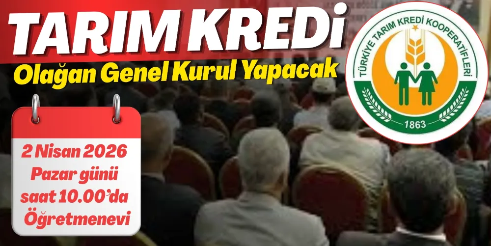 Anahtar Kelimeler: TARIM KREDİ OLAĞAN GENEL KURUL YAPACAK