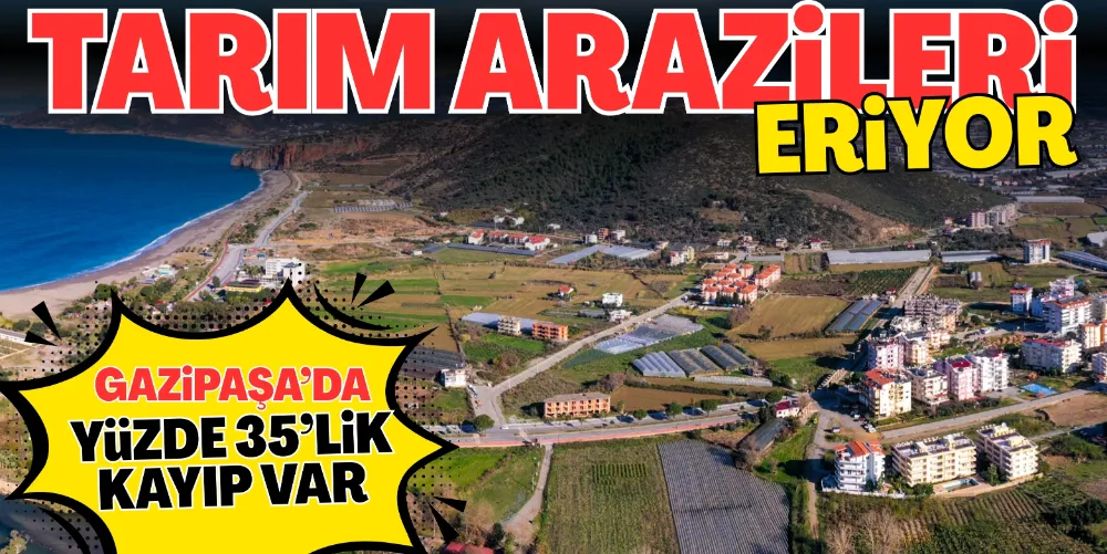 TÜİK verilerine göre Gazipaşa’da son 20 yılda tarım alanlarının YÜZDE 35’İ kaybedildi. Antalya genelinde kayıp yüzde 16,7’ye ulaşırken tarım topraklarının azalması üretim, gıda güvenliği ve ekonomi açısından ciddi risk oluşturuyor.