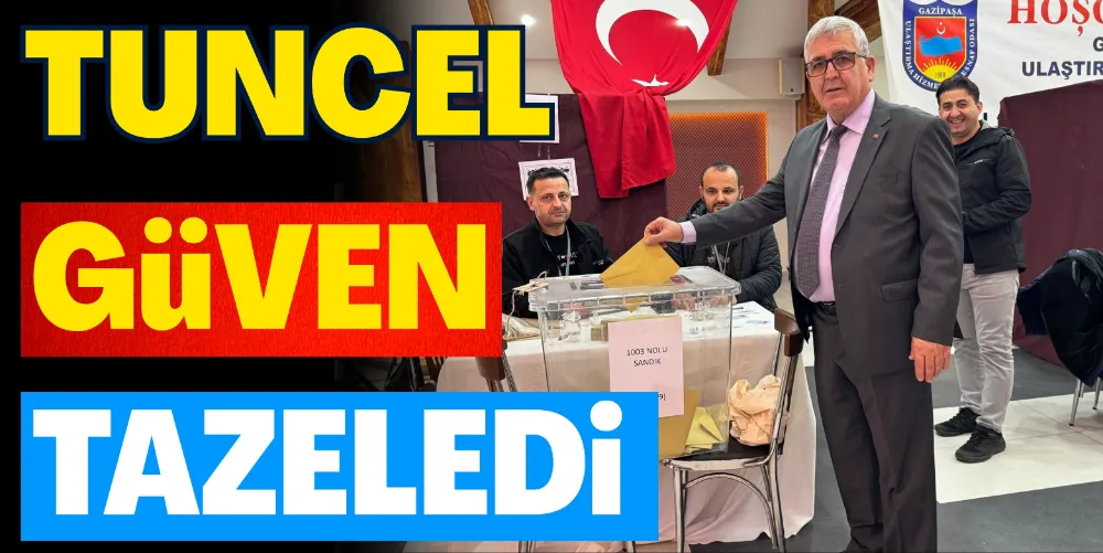 Gazipaşa Ulaştırma Hizmetleri Esnaf Odası’nın 13. Olağan Genel Kurulunun ardından Hasan Tuncel’in asil yönetim listesinde Ahmet Tekin, Halil Koç, Muhsin Yaman, Kemal Aksoy, Şefik Belen ve Ersoy Sert yer aldı. Yedek yönetimde ise, Abdullah Aslan, Veli Şenol, Abit Öztürk, Erdoğan Üner, Mehmet Özkan, Mehmet Yıldız ve Sezai Tuncel isimleri bulunuyor. Denetim kurulu asil üyeleri Ahmet Nafiz Kalaycı, Büyük Alpaslan Tuncer ve Tevfik Aksoy oluştururken, denetim kurulu yedek listesinde Murat Özgen, Erhan Sönmez ve Ali Yasir Tuncer oluşturdu.