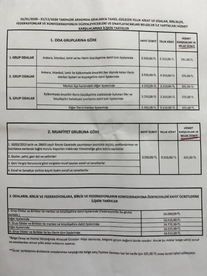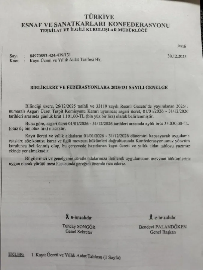 AİDAT VE EVRAK BEDELİ ASGARİ ÜCRETE BAĞLI