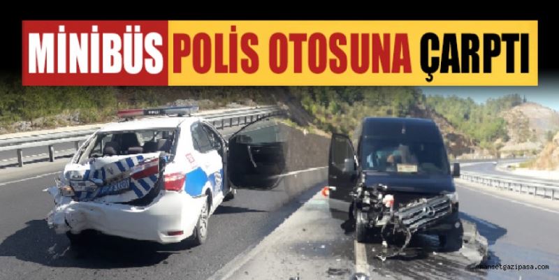 Alanya-Gazipaşa yolunda radar uygulaması yapan park halindeki trafik otosuna minibüs arkadan çarptı. Kazada ölen ya da yaralanan olmazken, her iki araçta da maddi hasar meydana geldi.