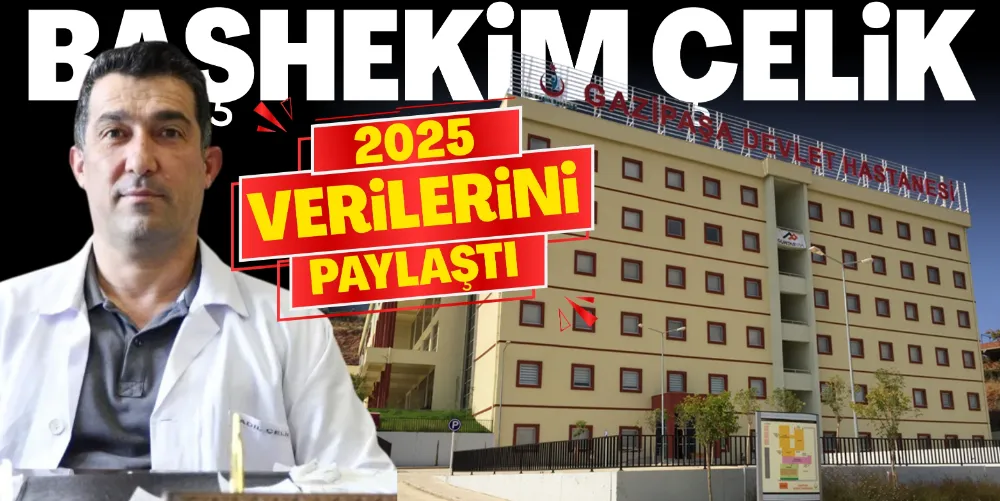 Gazipaşa Devlet Hastanesi Başhekimi Dr. Adil Çelik, Devlet Hastanesinin 2025 yılı istatistiklerini paylaştı. Çelik, yıl boyunca hastaneye 272 bin poliklinik, 133 bin acil başvuru yapılırken 7 binin üzerinde ameliyat gerçekleştirildiğini belirtti.