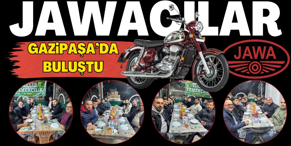 Gazipaşa’da düzenlenen buluşmada, Gazipaşa Jawacılar Kulübü ile Alanya Jawacılar Kulübü üyeleri bir araya geldi. Etkinlikte Jawa marka motosikletlere ilgi duyan kulüp üyeleri, bir arada vakit geçirme imkanı buldu. Buluşma kapsamında katılımcılara, Türker Yemekçilik sahibi Erdal Türker tarafından hazırlanan yemekler ikram edildi. Kulüp üyeleri, yemek eşliğinde sohbet ederek keyifli bir akşam geçirdi. Etkinlik boyunca motosiklet kültürü üzerine sohbetler yapılırken, kulüp üyeleri birbirleriyle tanışma ve görüş alışverişinde bulunma fırsatı yakaladı. Kulüp üyeleri, bu tarz buluşmaların ve tur etkinliklerinin ilerleyen süreçlerde de devam edeceğini belirti.