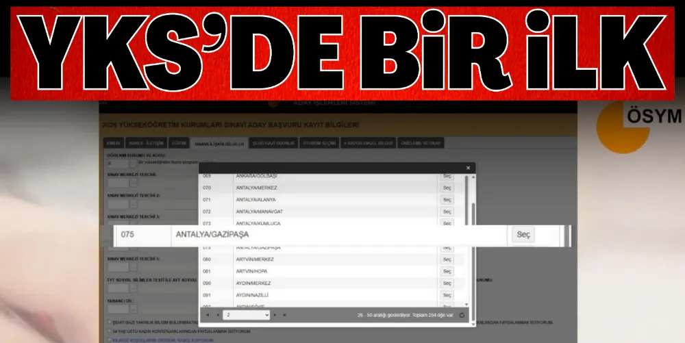 2026 Yükseköğretim Kurumları Sınavı (YKS) başvurularının başlamasıyla birlikte Gazipaşa’da eğitim açısından önemli bir gelişme yaşandı. Bugüne kadar ilçe dışında yapılan YKS, 2026 yılı itibarıyla ilk kez Gazipaşa’da gerçekleştirilecek. Bu gelişmeyle birlikte Gazipaşa, ÖSYM sisteminde ilk kez ayrı bir sınav merkezi olarak yer aldı.